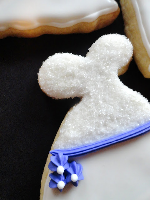 The bride's sister sent me a picture of a cookie to get the design from there, I do not know where he got the picture from but I will be happy to post a link to the source is any of you have seen the cookie design before in another site.